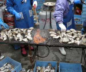 厚岸の焼き牡蠣。6個で1000円でした。