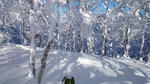 ロングでワイドなノーズは、某カーボン屋の粉雪板みたいに柔らかくないから、不必要な浮力を発生させること無く落ちて行ってくれる。