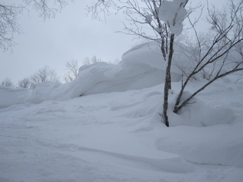 溜まった雪にノーズが刺さりそうになってしぬかと思った。