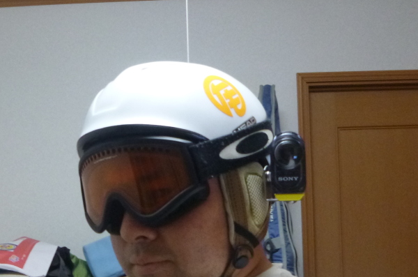 左側に付けたのは、それほど進行方向に顔を向けて滑ったりしないので、右側に付けると正面が撮れないと思ったから。
