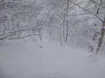 27日からまとまった降雪の無いルスツ。見えるところは入られているから、狭い所を抜けてのパウダーラン。