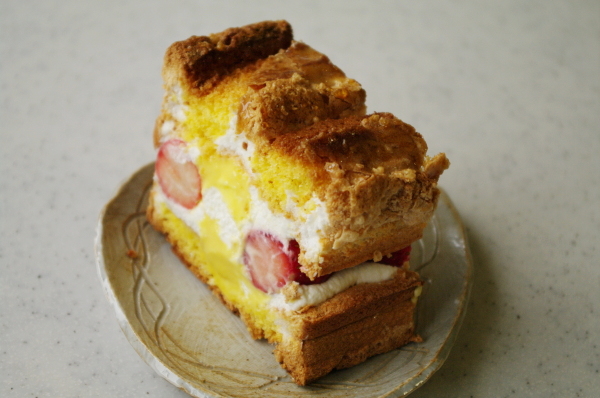 ふわっふわのスポンジで、カスタードと生クリーム、イチゴをサンド。