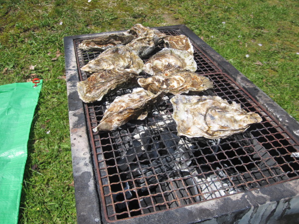 受付で、焼き台の申し込み等をして、場所を取って、焼き台を借りてきて、牡蠣を買ってきて、