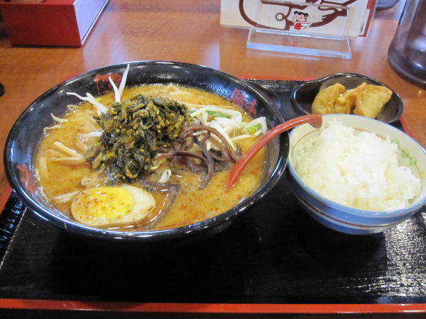 ぱいくうを勧められたけど、高菜に惹かれて、阿蘇高菜ラーメン・Aセットを注文。