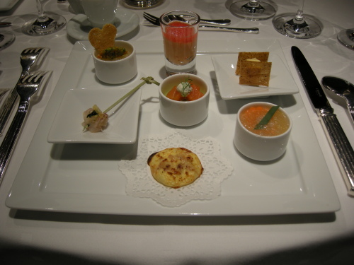 サラダが出た時に、係りの人が使っているオマール海老がいかにすばらしい物かを、トレーに生の海老を乗せてテーブル毎にわざわざ説明して回っていた。