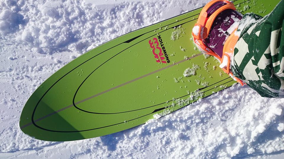 ロングでワイドなノーズは、某カーボン屋の粉雪板みたいに柔らかくないから、不必要な浮力を発生させること無く落ちて行ってくれる。