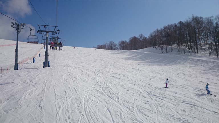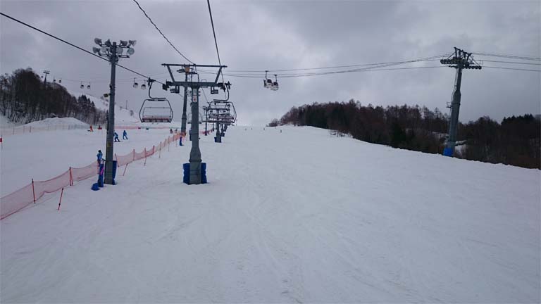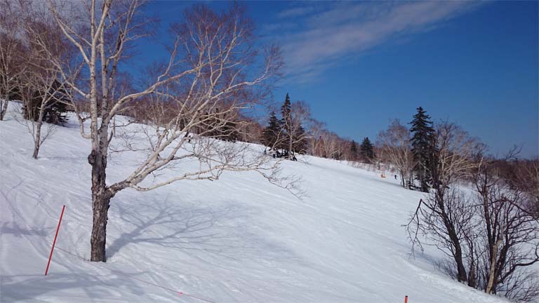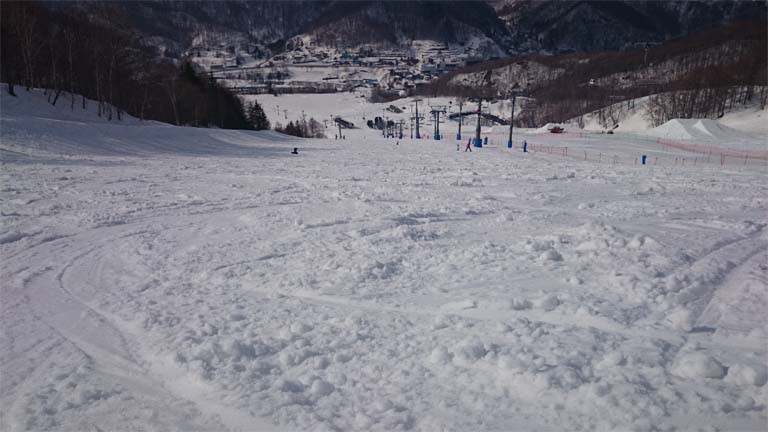 ゲレンデコンディションは表層2㎝くらいはシャバって、その下はガリガリ。