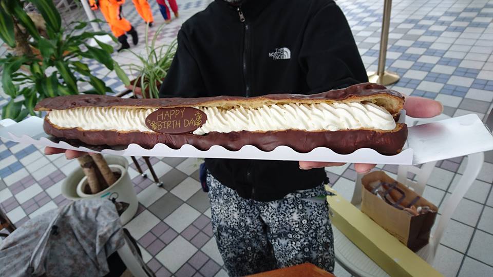 50㎝の長大なエクレアがあったと思ったら、15㎝以上のガラスの器の入ったプリンもあったり、美味しいお酒も頂いたり。