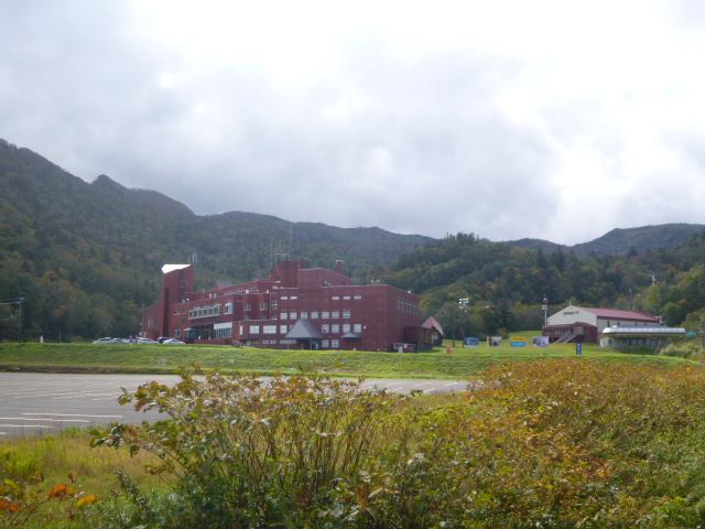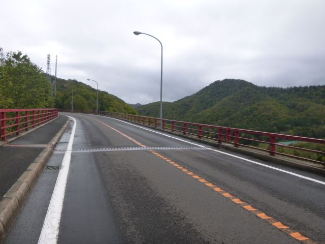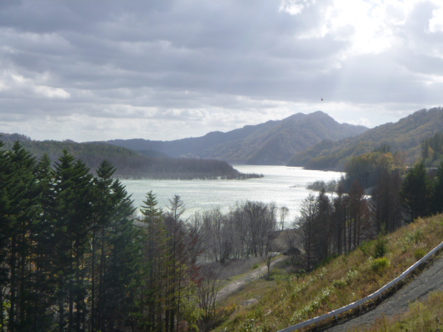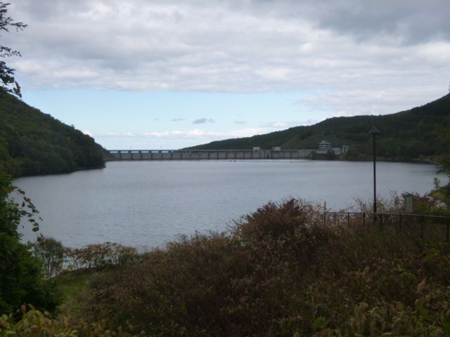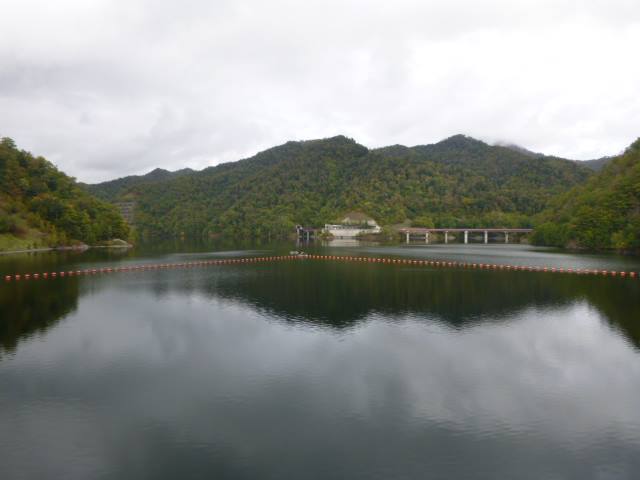 おなじみの大きなカーブを上がって、ダムを眺めつつひたすら登ったら、家から60キロ位で赤い建物に到着。