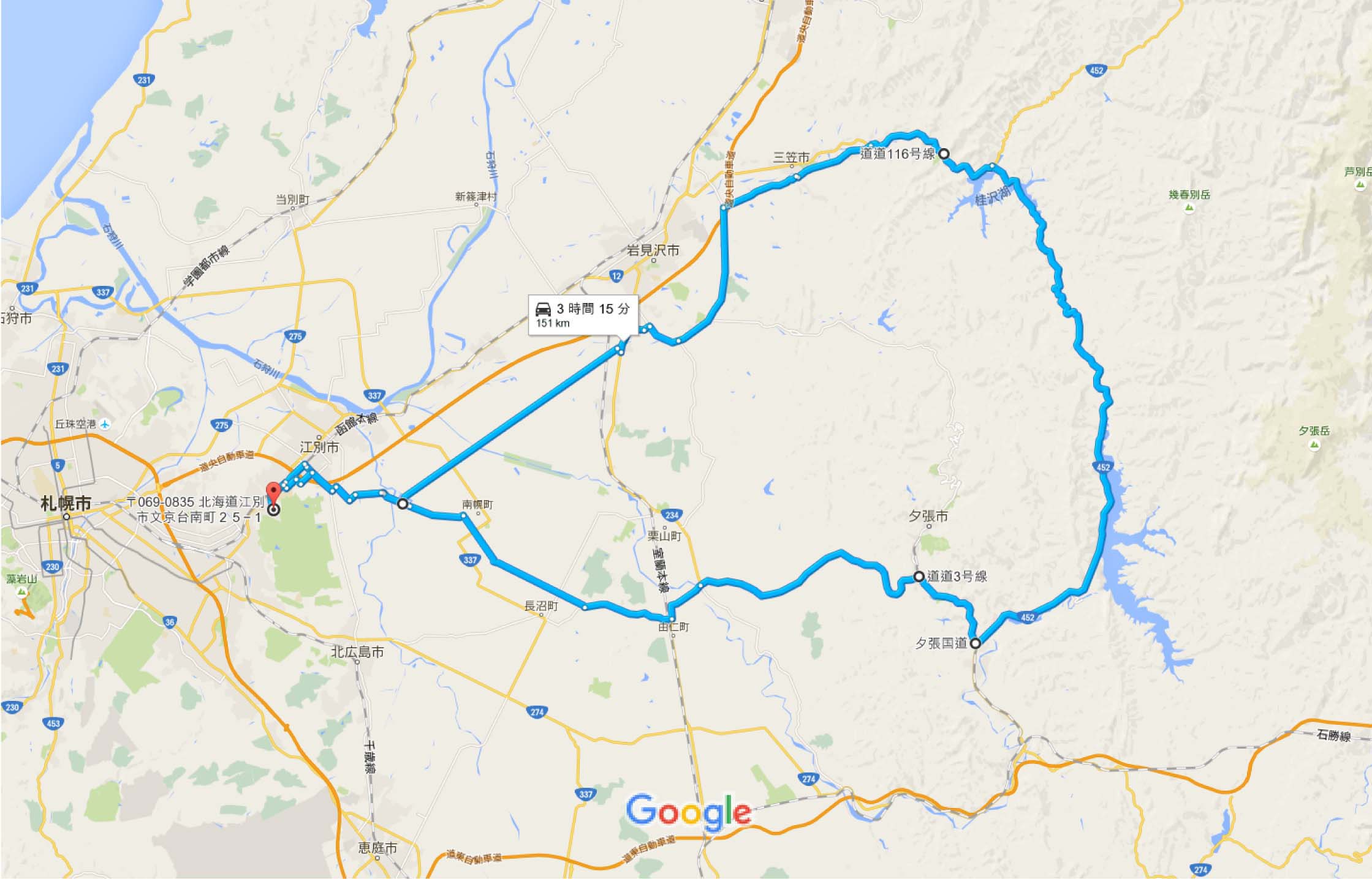 まずは豊平川を登ってから南下して、トンネル過ぎて温泉街の手前で左に入る。