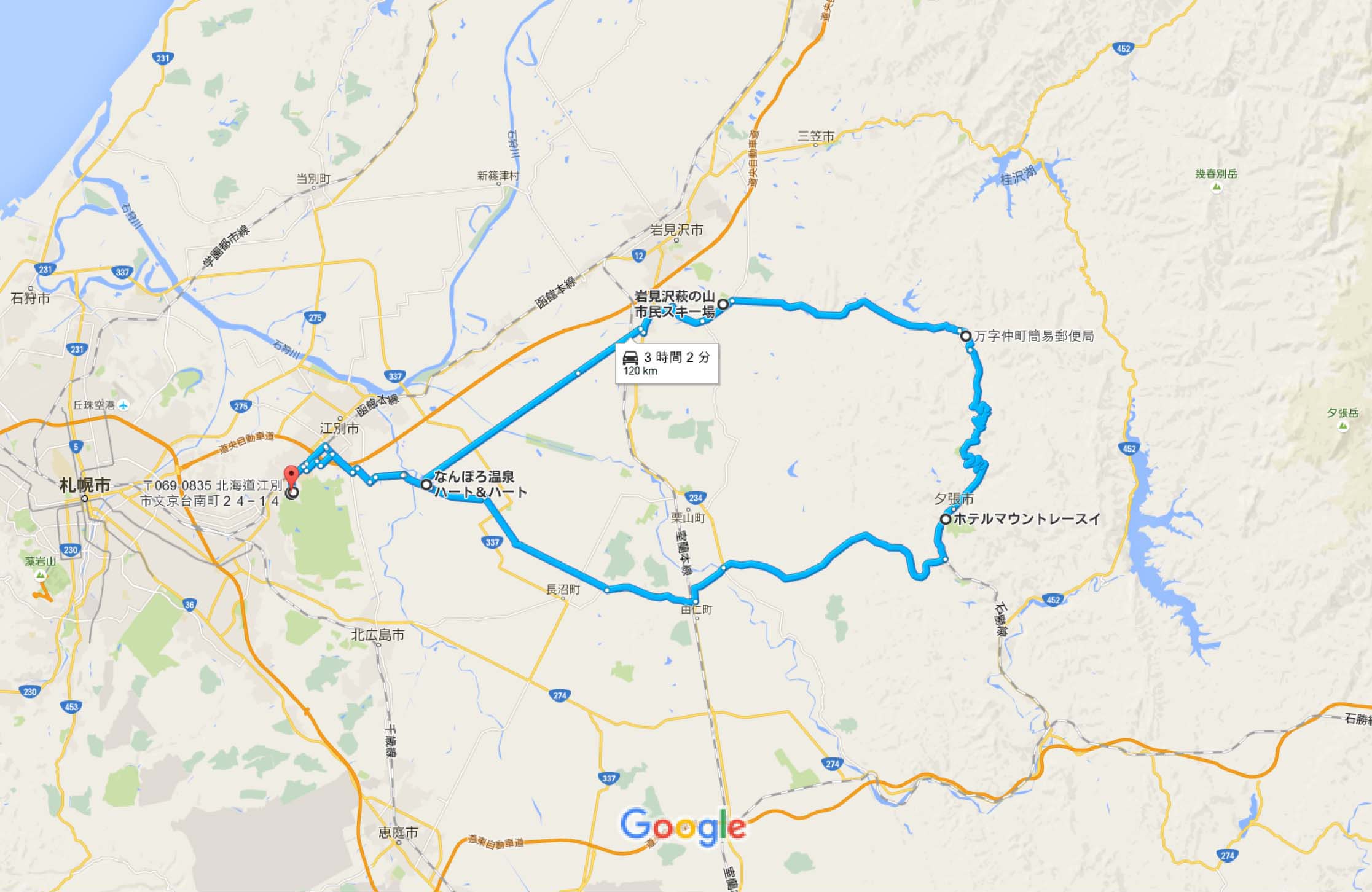 グリーンランド手前から、南幌温泉までの直線をひたすら進むと、家まであと一息。