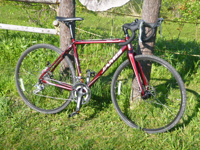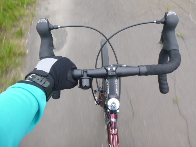 レースで前傾姿勢の強いフレームと比べて、楽な乗車姿勢と太目なタイヤで快適に走ることができる。