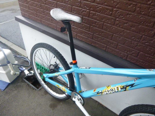 標準的な350mmのシートポストが付いていたけど、BMXなので手でつかんだり足で挟んだりする為で、座って乗る高さ迄をフォローする様には考えられてない。