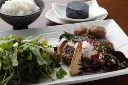 ソースが何種類かあって、お肉がそれぞれ、あか牛、サロマ牛、鹿肉の中から選べる。