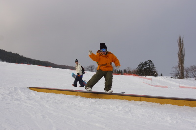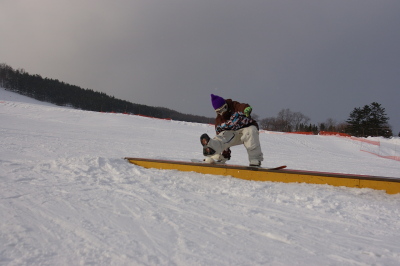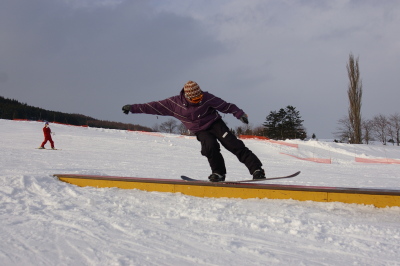 最近、フリースタイルの板でただ滑るのがすっごいつまらなくて(滑んのはやっぱりアルペンがいーや)、ちょこっとづつグラトリ練習してた。萩では一瞬の、リフト→キッカーの移動も、国際ならずーっとあるから、いっぱい練習しよう。