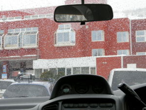 晴れ間のせいで気温は上がり、道路は濡れたり乾いたり。