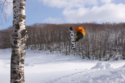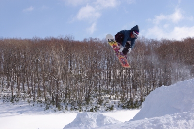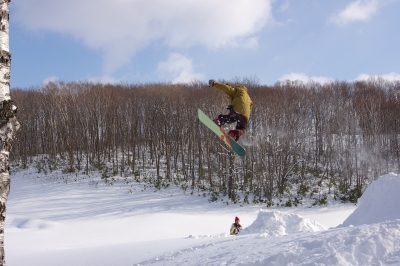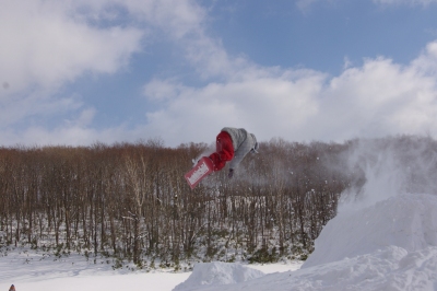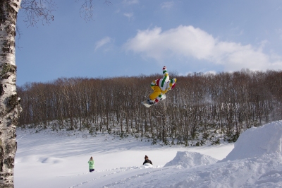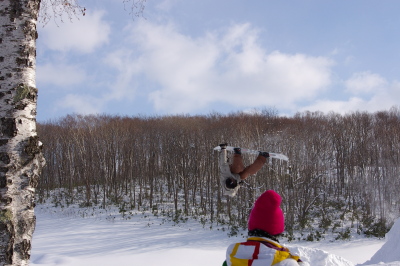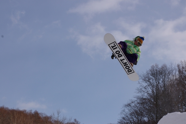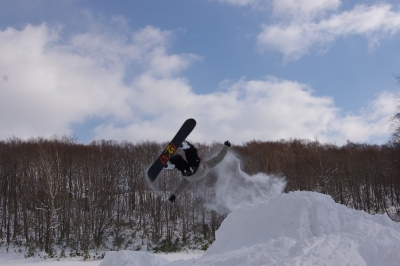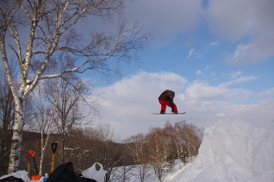 狭いスキー場、やることは一つなので、他のコースに行ったり休憩したりしても、何度かメルトの人たちと遭遇しました。みんなしっかり飛んで、上手いっすねー。うらやましい。
