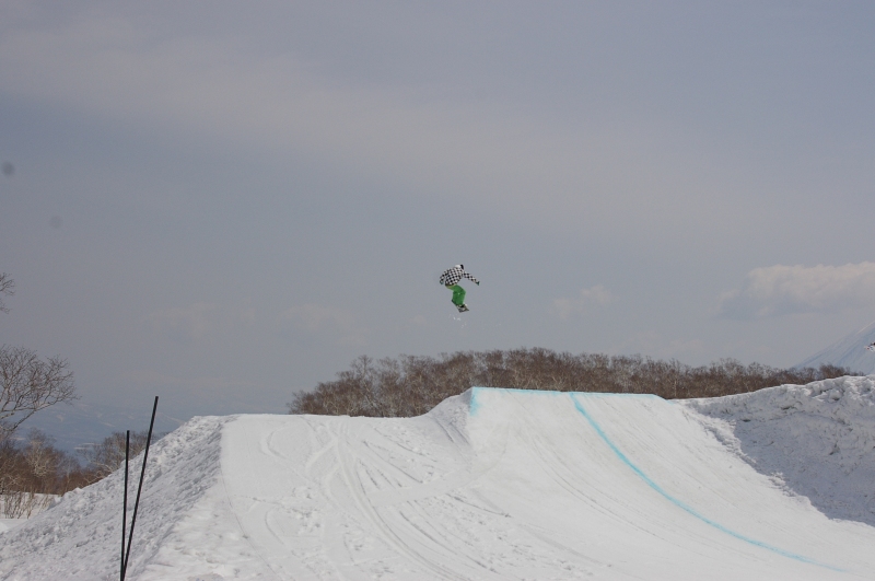 シーズン最後だから、メインで使ってたダークスター一月ぶりに引っ張り出して気合十分だったんだけど、最近の悪癖、ノーズ下がりがガツンと出て着地で前転!