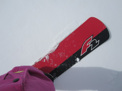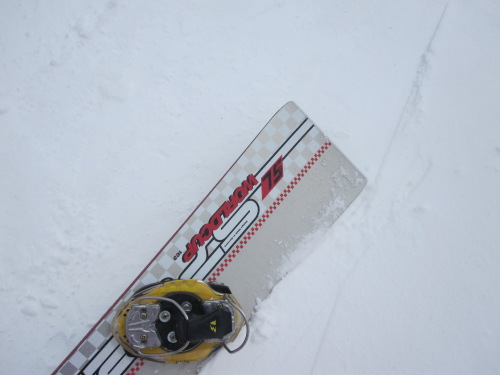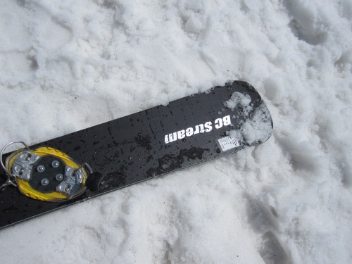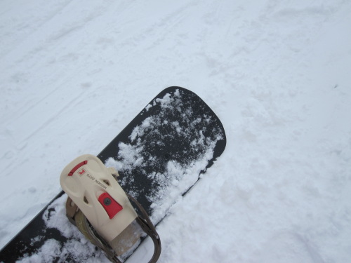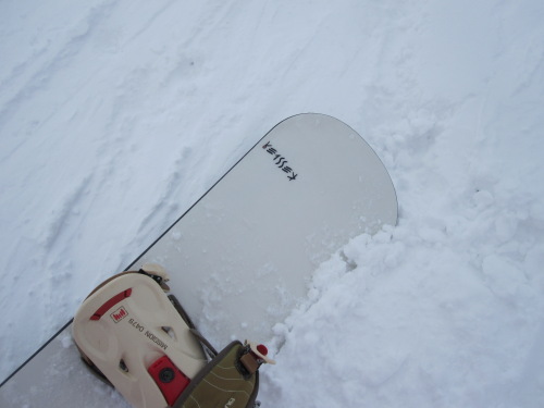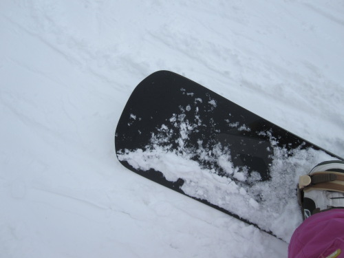 なので、カービングは捨てて、厚く軟らかいザラメの上を面で滑る。