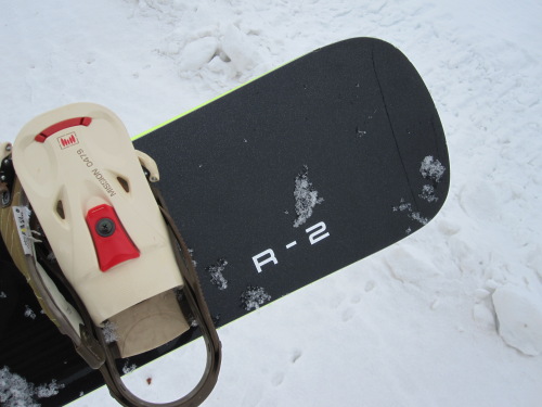 まずはBCのR-2。ハンマーヘッド+ロッカーのカービング系フリースタイルボード。