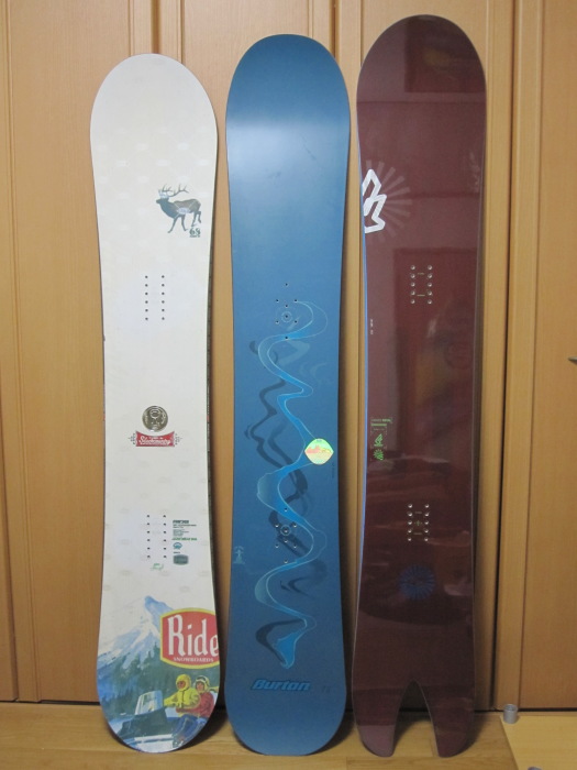 スワローテールのroyal、ノーマルシェイプのBigAir、パウダーロッカーのSlackcountry。