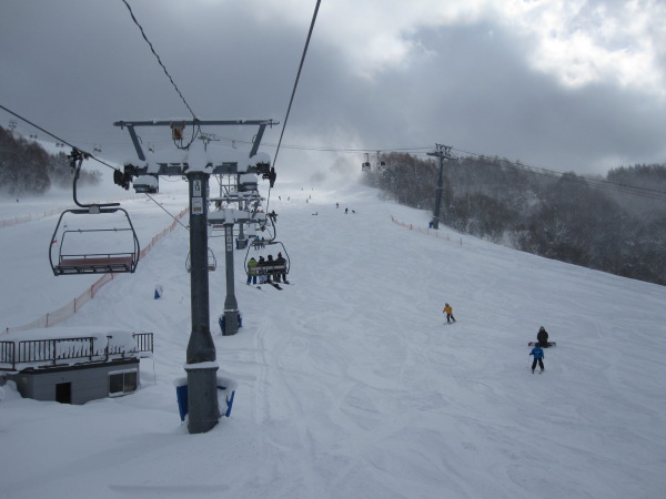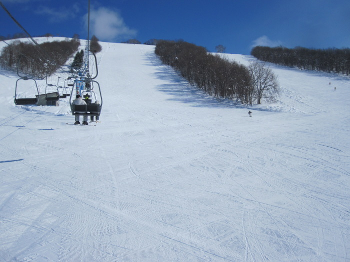 その代わり、長くて重い板を捌くのに体力を消耗するみたいで、午後の滑り出しには結構へばってた。