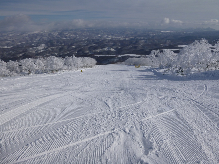 ゲレンデ内は、しっかり踏み固めるだけの雪の量が無いからか、カービングにはあまり向かないコンディション。