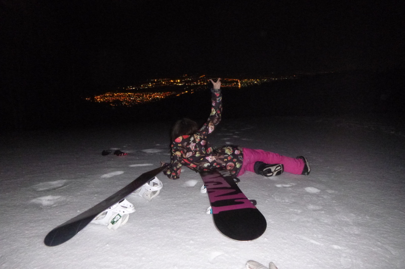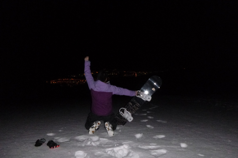 ゲレンデまでの途中の道路には、夜景を見に来た車が何台も停まっていたけど、わざわざハイクして眺める夜景は一味違う。