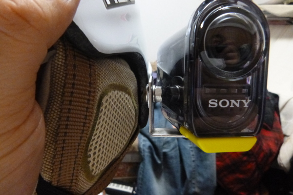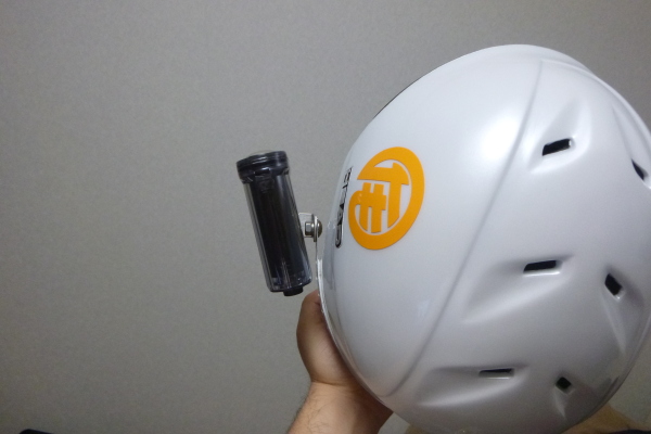 左側に付けたのは、それほど進行方向に顔を向けて滑ったりしないので、右側に付けると正面が撮れないと思ったから。