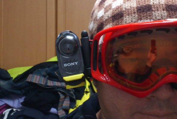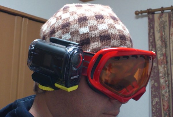 ゴーグルのストラップに取り付けるこのカメラ。