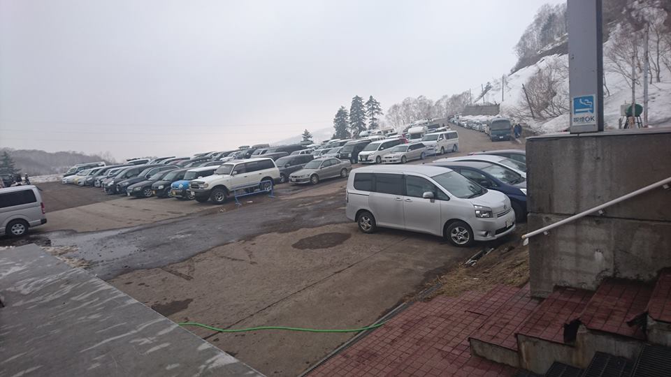 朝、8時に到着したんだけど、他がまだまだ営業中だからンな事ないと思っていたら、スキーの大会に100人超、パークのイベントもあったから駐車の車は早くも道路に溢れてた。