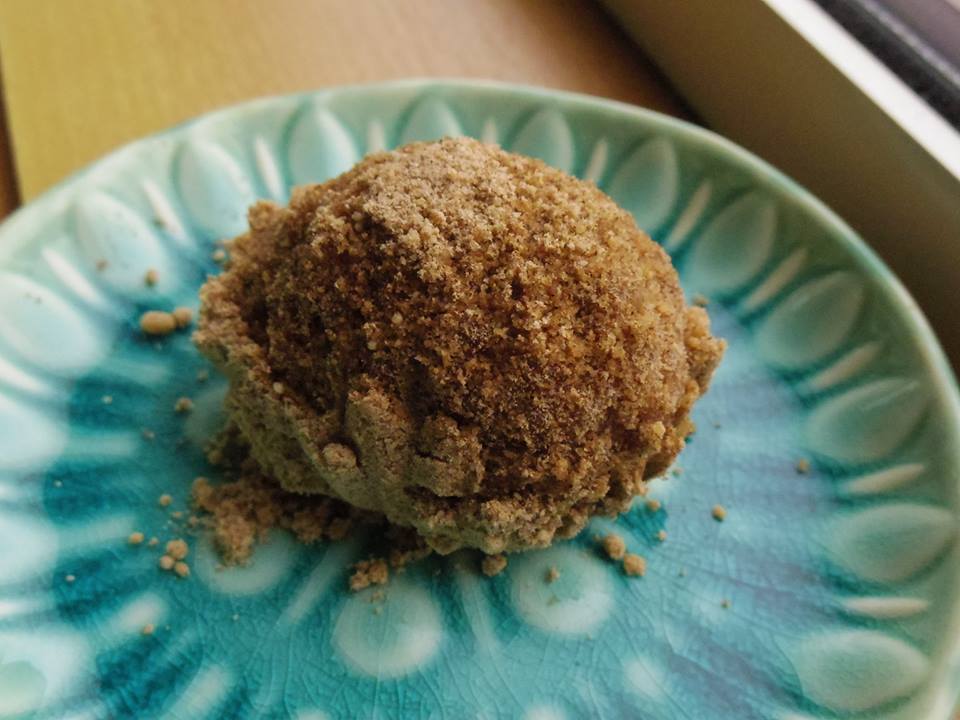 カップの淵に信玄餅を配し、上からきな粉と黒蜜をトッピングした和風なソフトクリーム。