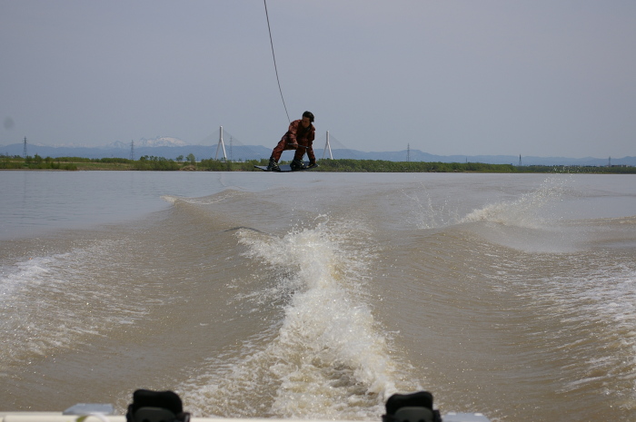 前回一緒になったときは荒れ面。今日みたいに凪の時に滑るのを見たかった。