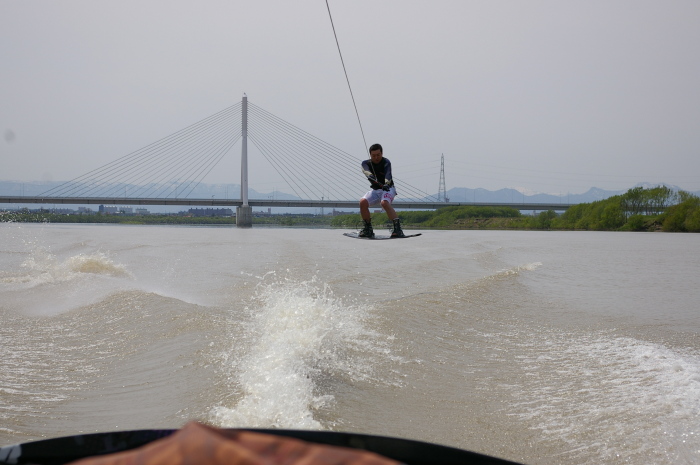 ひたすら凪で、気持ちよさそうに滑るhayakawaさん。