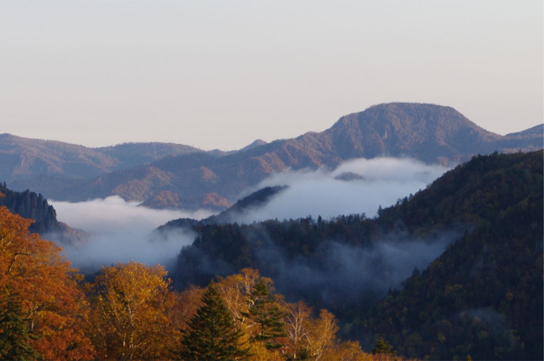 雲海の絶景は拝めなかったけど、山の朝の表情もなかなか。